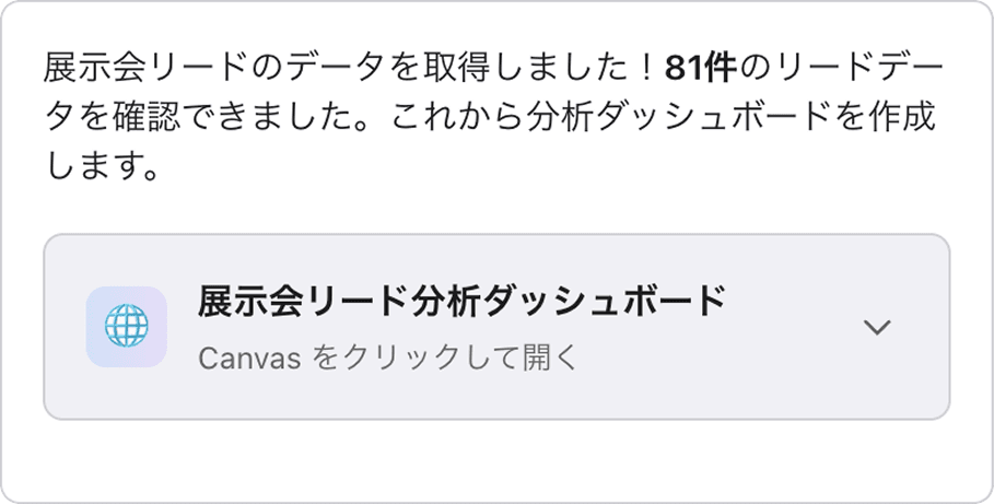 レコードの内容を読み取り、キャンバスでダッシュボードの作成もラクラク実行。
